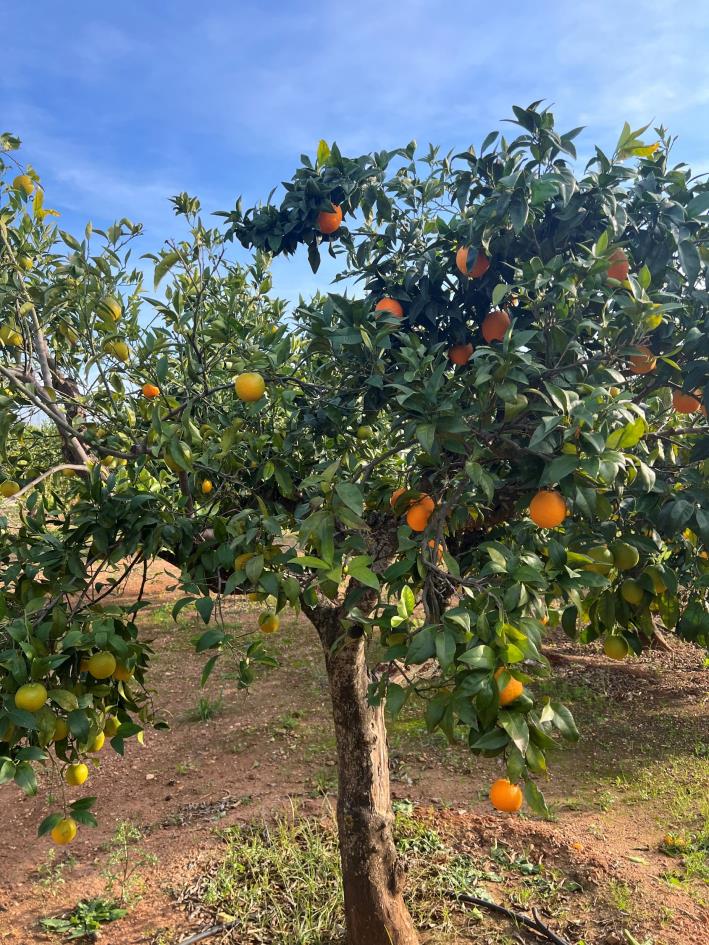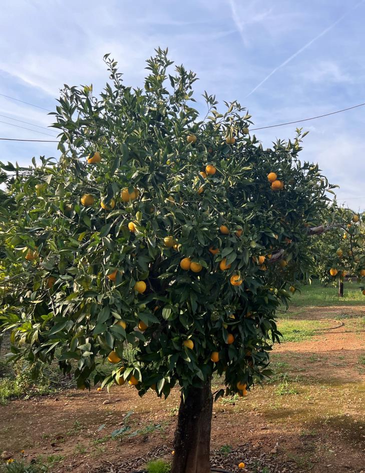 Appelsintrær med tradisjonell vanning og gjødsling. Normal vekst.